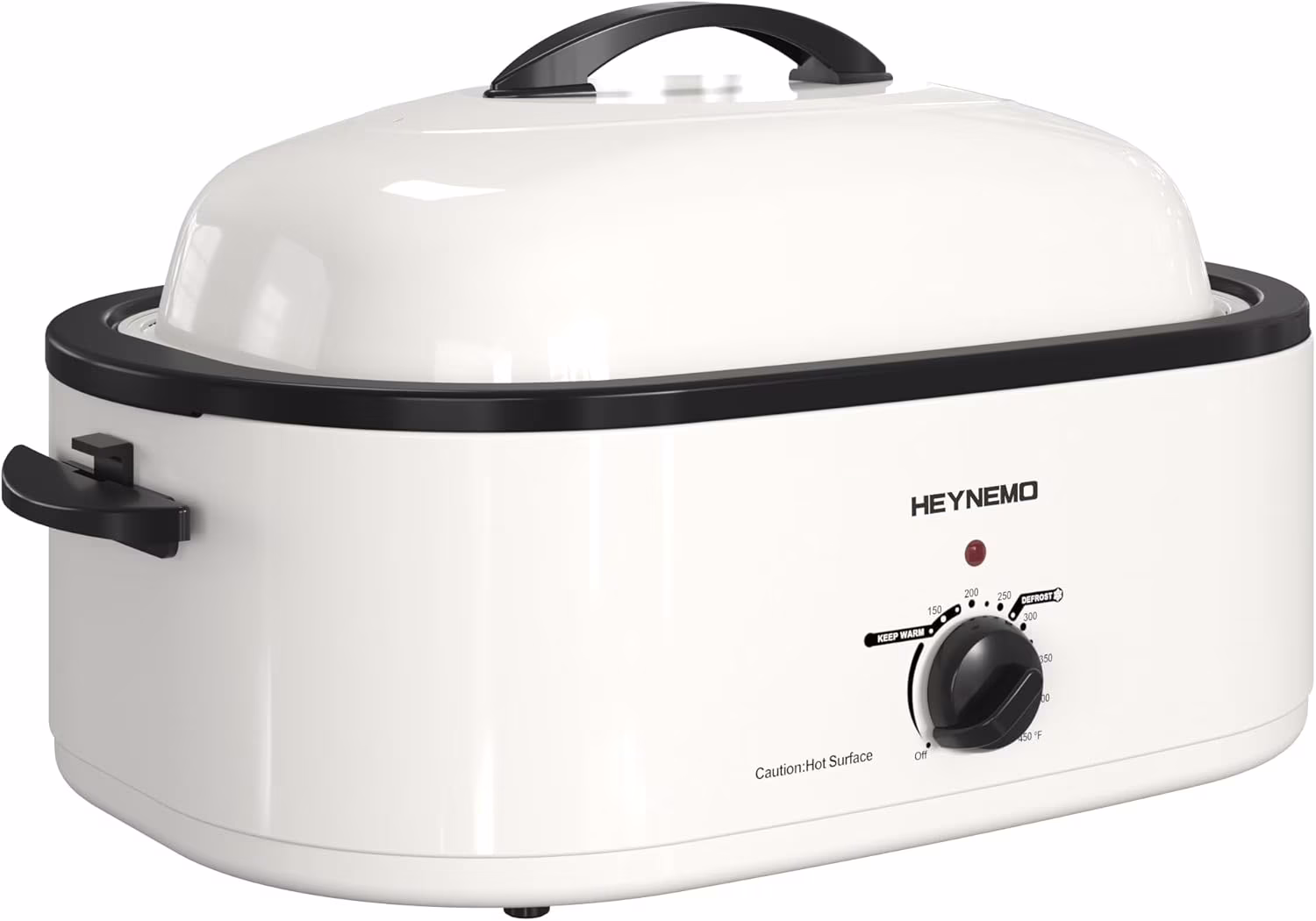 18 Quart Electric Roaster Oven, Turkey Roaster Electric, Roaster Oven Buffet, Selfbasting Lid, Removable Pan, Full-Range Temperature Control Cool-Touch Handles, White Body, Black Lid