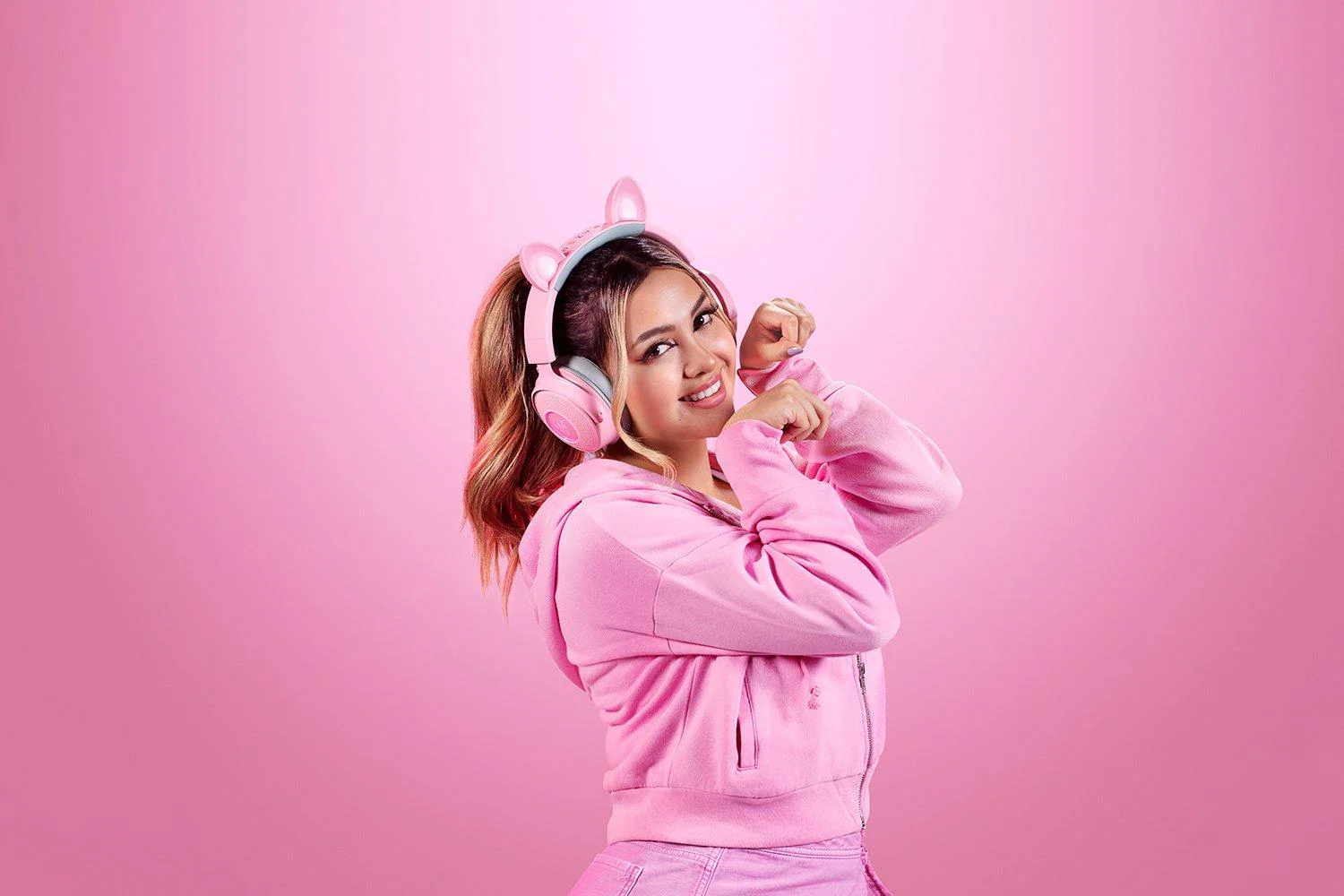 Razer – Kraken Kitty V2 Pro – Gaming Headset med Udskiftelige RGB-Ører (Lyserød)