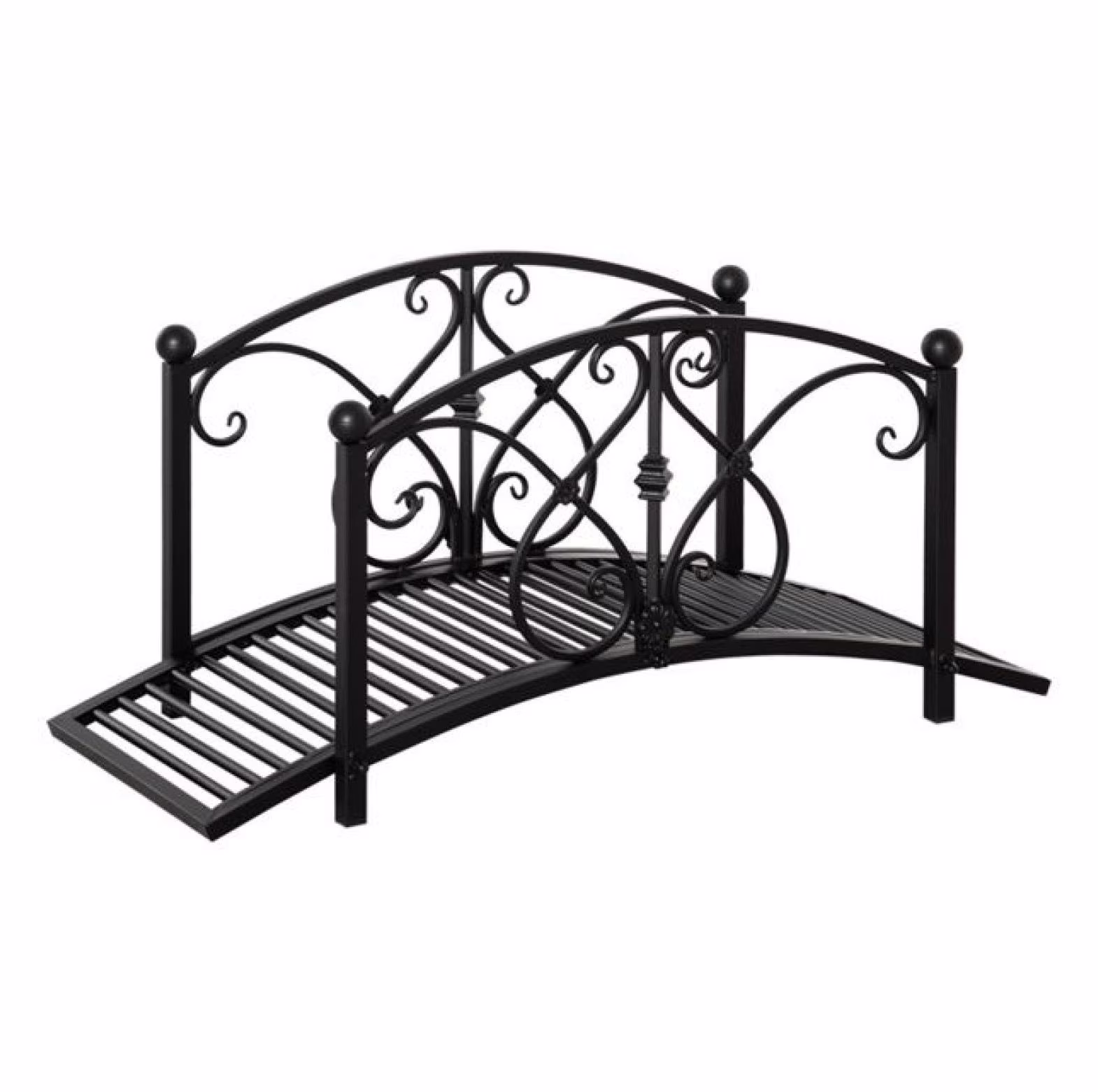 Garden Bridge - Decorative Steel Arch Bridge for Walkways, Fish Ponds & Streams - Black, 40.25"L x 18.5"W - 264 lbs Capacity