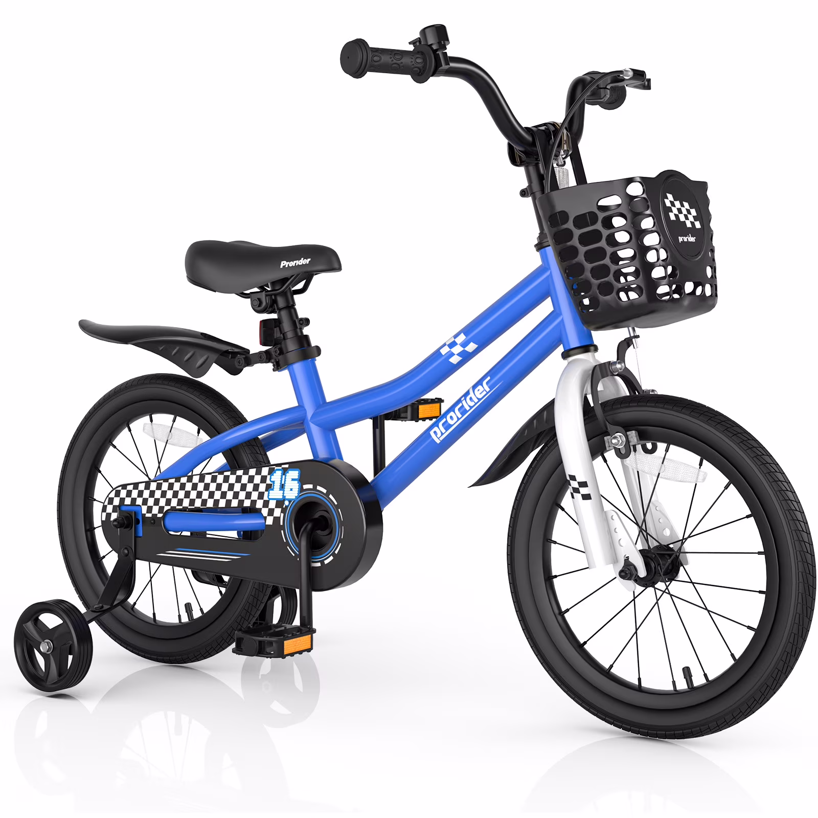 Prorider 16'' Kid's Bike with Removable Training Wheels & Basket for 4-7 Years Old Blue