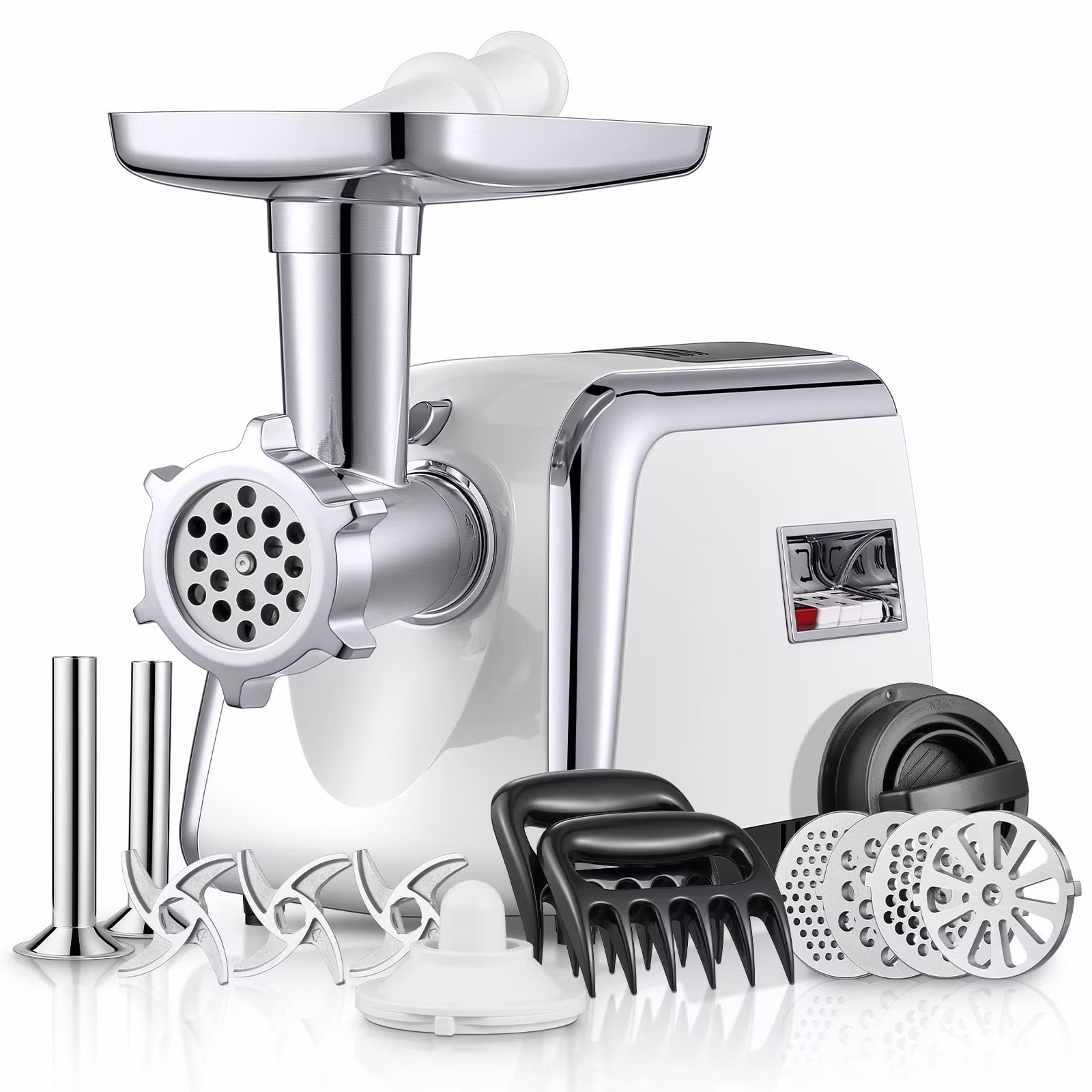 Electric Meat Grinder Heavy Duty,3000W Max 5 in1 Sausage Stuffer Maker with 4 Stainless steel Plates & 3 Blades,Sausage & Kubbe Maker Kit/Slider Maker