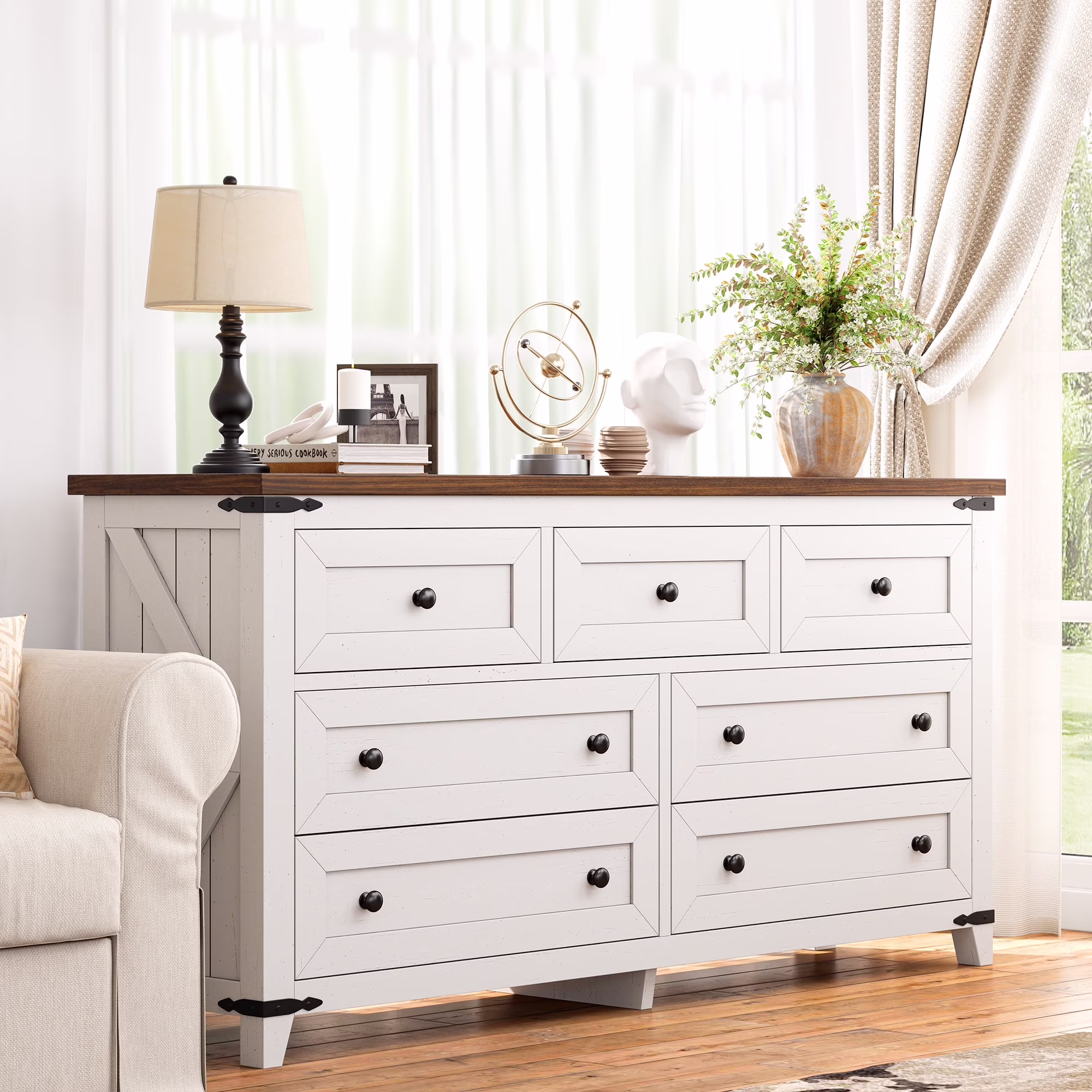 EnHomee White Dresser for Bedroom Vintage Wood Dresser with 7 Deep Drawers & Easy Pull Out Handles Chest of Drawers for Bedroom Storage Cabinet