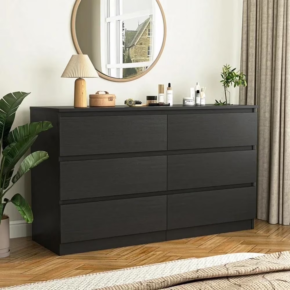 Kadyn Modern 6 Drawer Dresser Wood Cabinet,Dresser for Bedroom, Kitchen Storage Cabinet with Drawers, Chest of Drawers(Black)